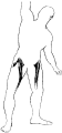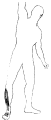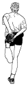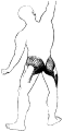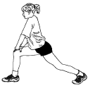 Beuge jetzt das rechte Bein, und setze es gebeugt näher an die Wand heran. Entferne aus dieser Stellung heraus das linke Bein so weit von der Wand, dass die linke Fußsohle den Bodenkontakt nicht verliert. Verharre in